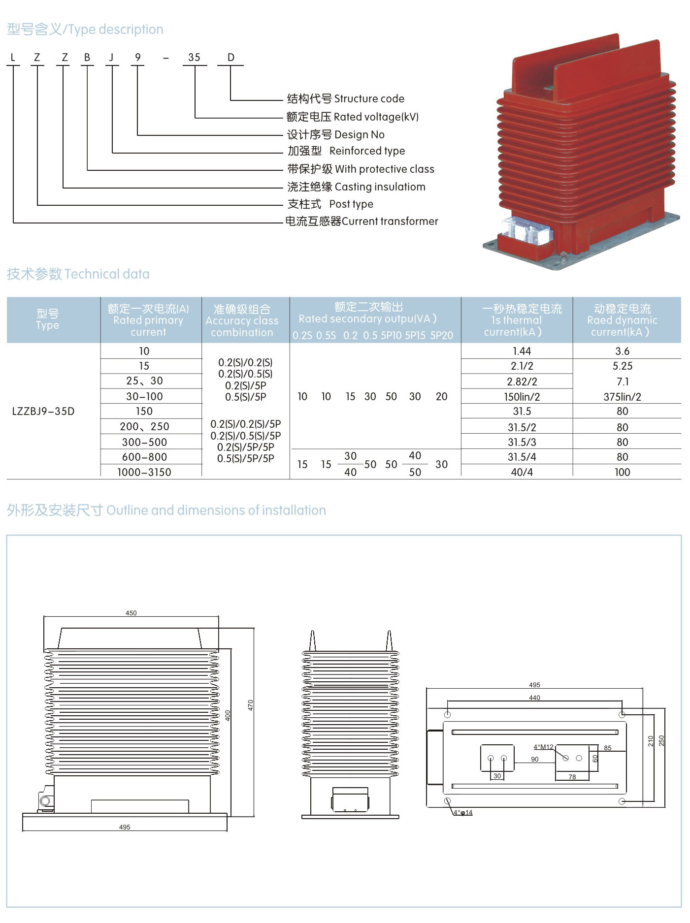三相一体式(户内母线式)带有零序、(零序)电流互感器