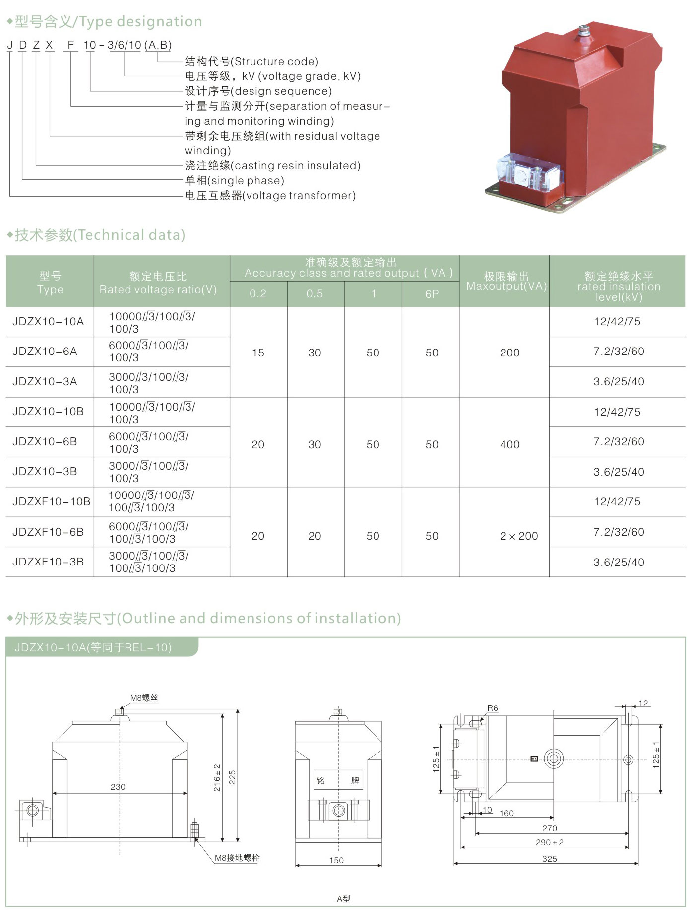 JDZX(F)10-10A、JDZX(F)10-10B型电压互感器