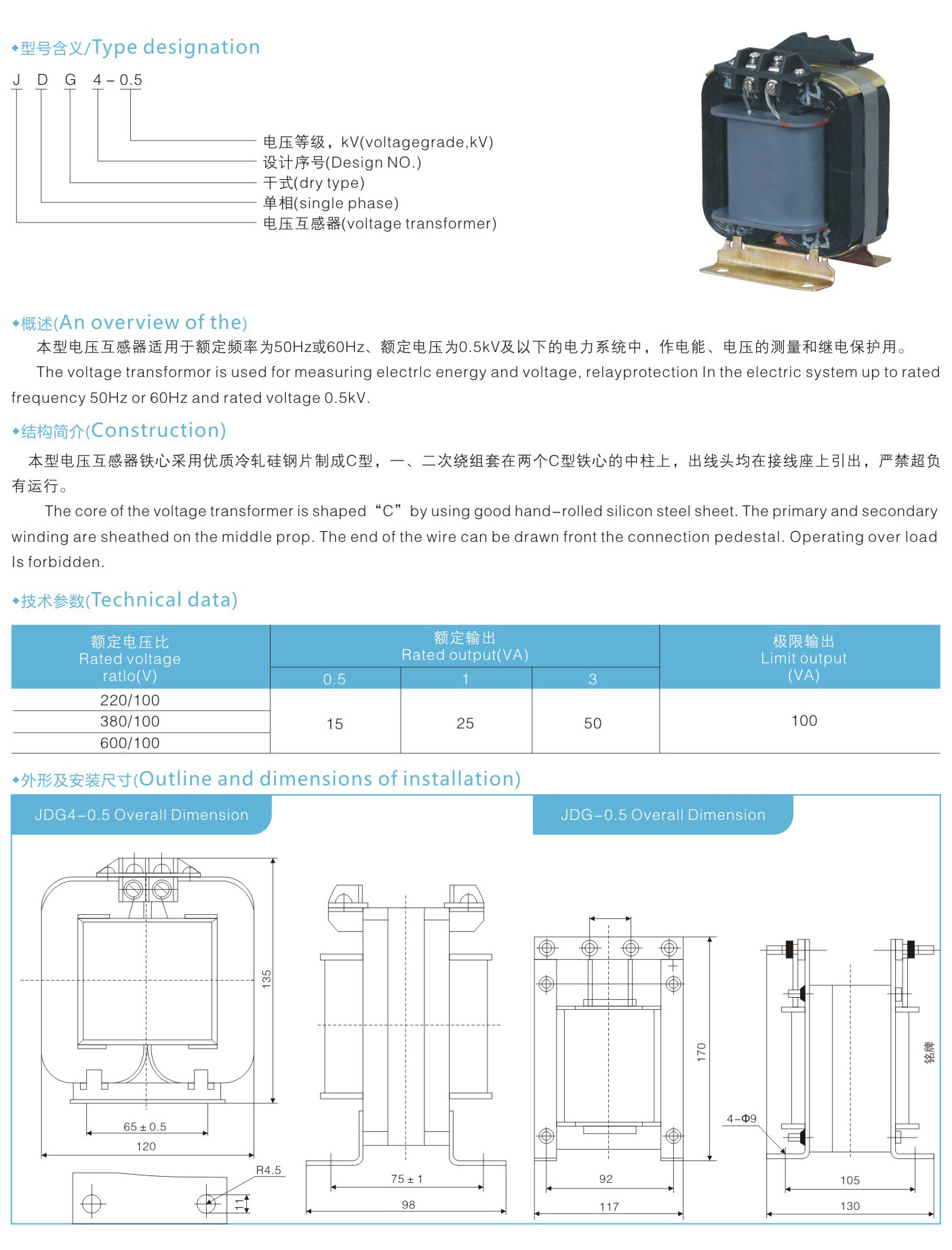 JDG-0.5、JDG4-0.5型电压互感器