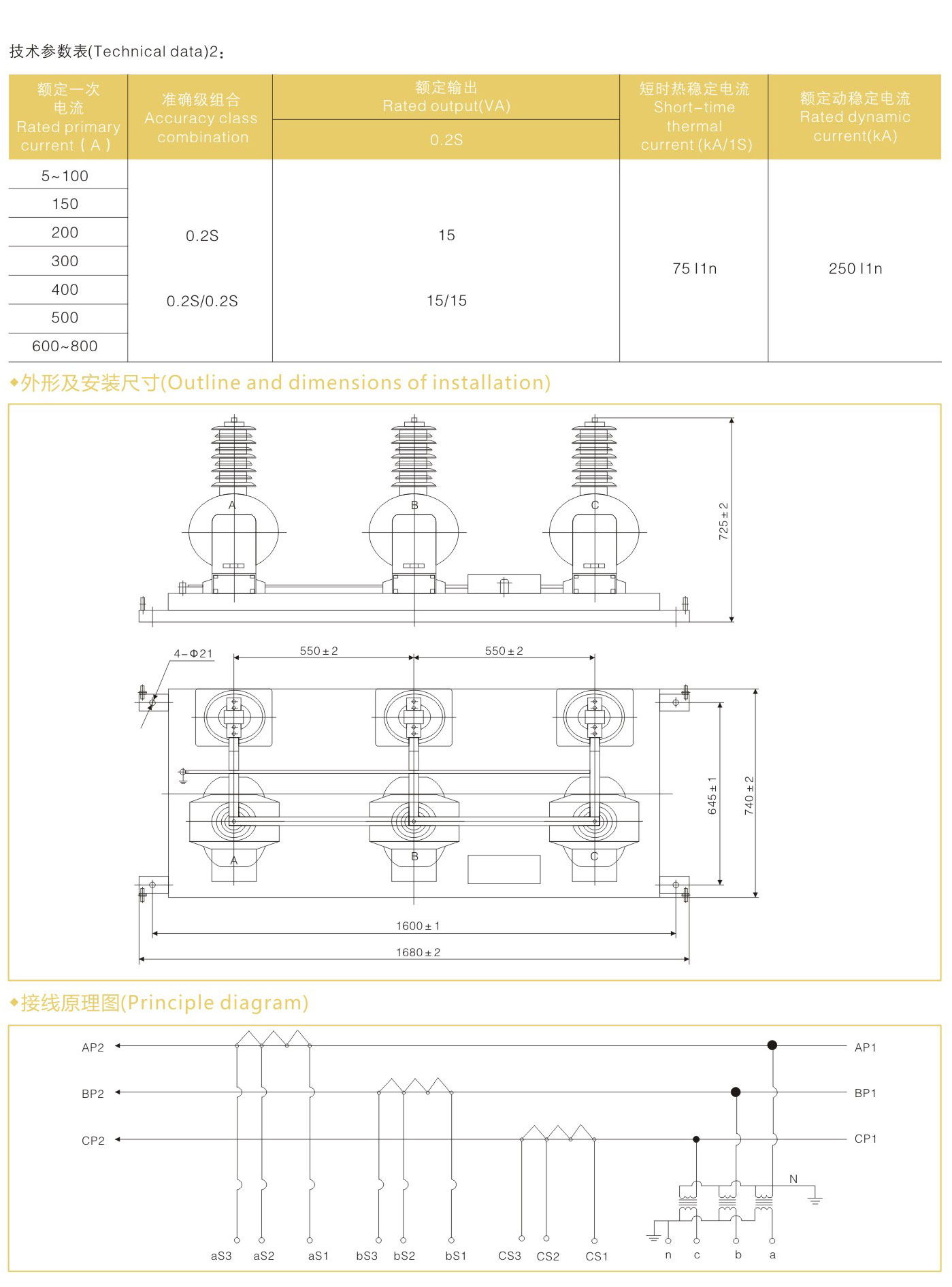 三相一体式(户内母线式)带有零序、(零序)电流互感器